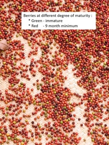 To produce BLACK pepper it is necessary to harvest berries (immature green berries) and to dry them in the sun where they darken and age while aroma. Black pepper is used on all types of dishes at the end of cooking because the heat destroys its flavor.